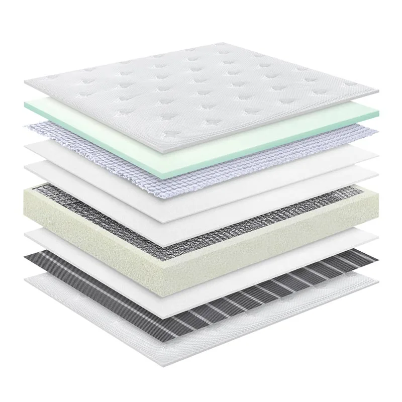 2. Geruza anitzeko formula zientifikoa: Ice Silk Knitted Fabric-en koltxoiak arretaz hautatutako materialak erabiltzen ditu eta kontrol tekniko zorrotza jasaten du, eskulan zorrotza gauzatuz. Izotz zetazko puntuzko ehuna, dentsitate handiko errebote aparra, 3D geruza transpiragarria, banaka poltsikotutako malgukiak, kotoi-feltro osasuntsua, ehundu gabeko ehuna, apar leuna eta material transpiragarriak ditu.
